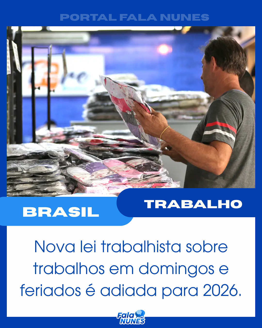 Nova lei trabalhista sobre trabalho em domingos e feriados é adiada para 2026.