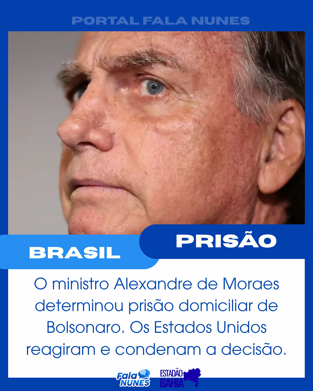 O ministro Alexandre de Moraes determinou prisão domiciliar do Ex-Presidente Jair Bolsonaro. Os Estados Unidos reagiram e condenaram a decisão.